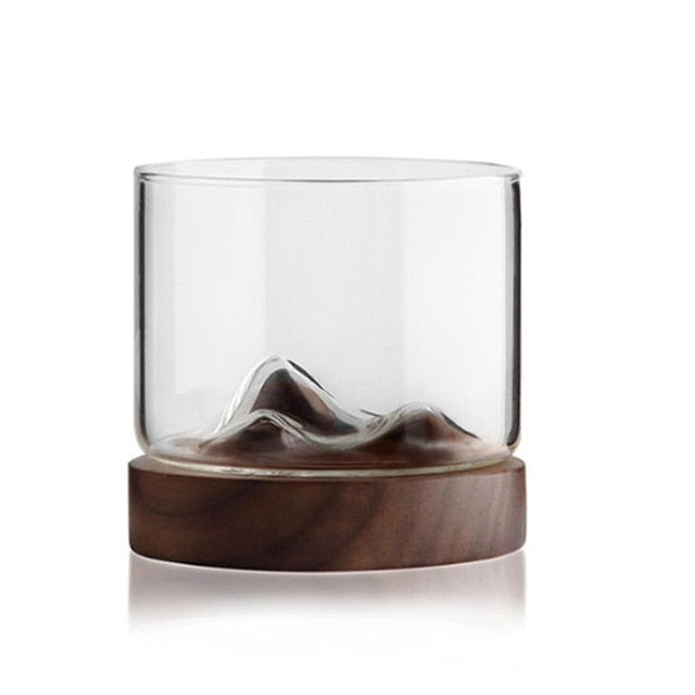 Your cocktail or tea will look amazing in this unique glass and wood mountain tumbler. With a removable wood base and heat resistant pyrex glass.