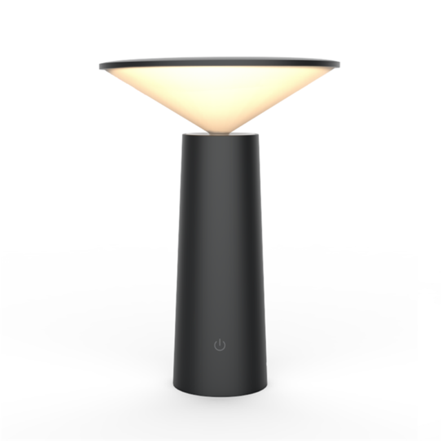 This contemporary table lamp is cordless, USB rechargeable, and handsome. The head tilts to direct the warm light. Includes warm to dim adjustment.